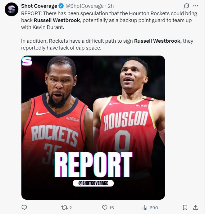 203個三雙換不來工作!火箭放棄大威少,4大美媒一致建議別簽他