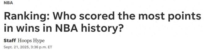 詹姆斯第一!美媒公布NBA勝場(chǎng)得分TOP20:庫(kù)里12哈登11喬丹僅第4