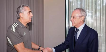 弗洛倫蒂諾前來支持今天參加超級杯決賽的籃球隊,皇家馬德里籃球隊將在這里對陣瓦倫西亞籃球隊。
