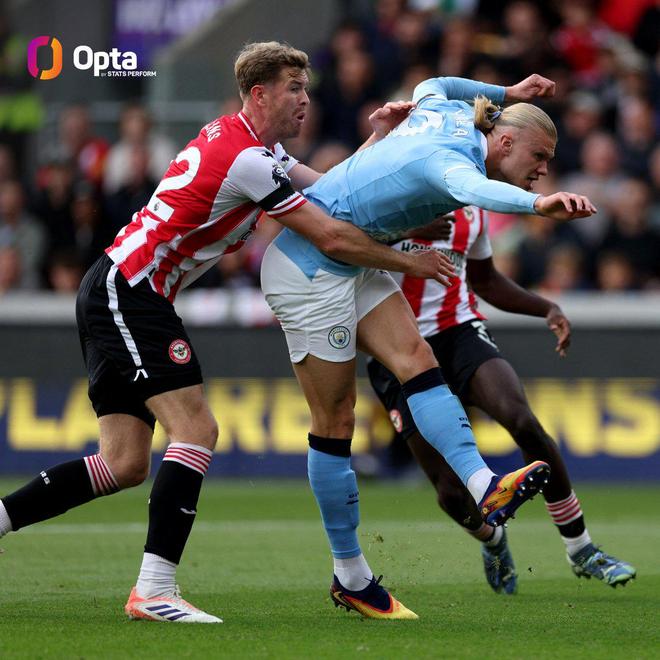 此役客場對陣布倫特福德,首發(fā)出戰(zhàn)的哈蘭德在比賽第9分鐘破門,這是哈蘭德英超生涯首次在布倫特福德社區(qū)球場取得進球。